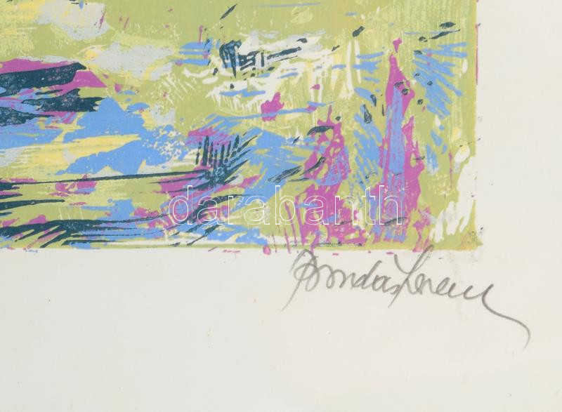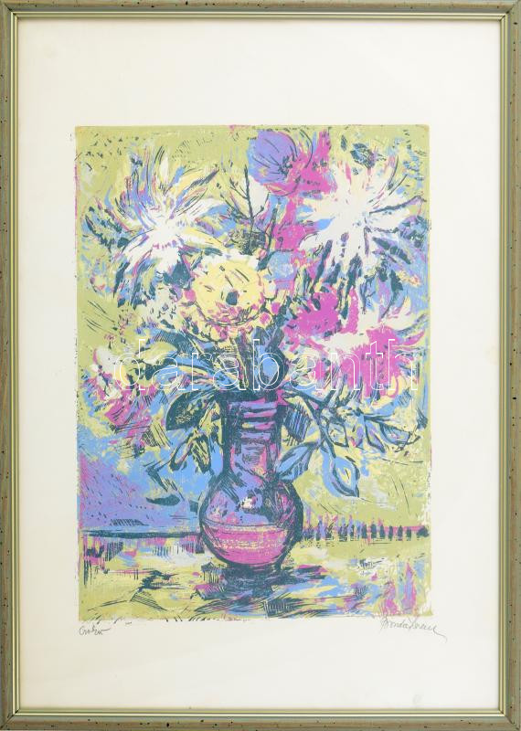 Bordás Ferenc (1911-1982): Csokor. Linómetszet, papír, jelzett Üvegeze...
