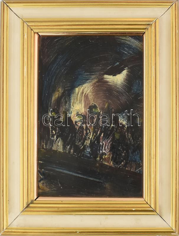 Description: Gábri/Gábry Albert (1935-2004): Impresszió. Olaj, farost, jelezve balra lent, hátoldalán a művész bélyegzőjével és autográf feliratával, dekoratív fakeretben, 20x15 cm