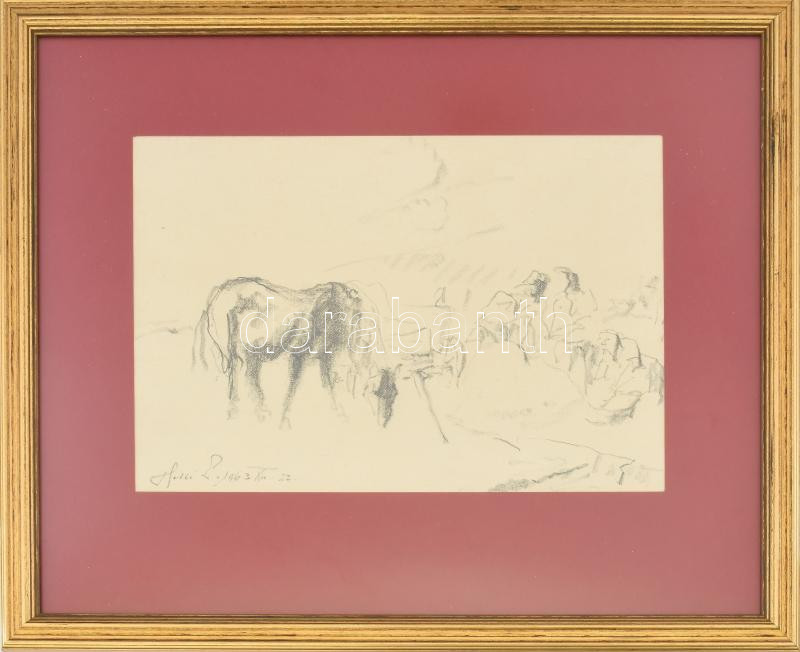 https://www.darabanth.com/en/475-Online-auction/475.0/Paintings-and-graphics/Paintings-and-graphics~500002/Hollo-Laszlo-1887-1976-Lo-es-emberek-1963-Ceruza-papir-jelzett-uvegezett-fakeretben-~II3229655