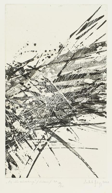 Laluk György (1954-2020): Az idő szövevénye, 2001. Rézkarc, papír, jel...