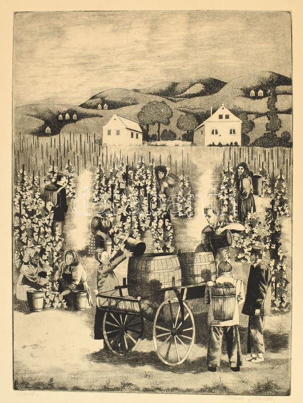 Molnár Gabriella (1940-): Szüret. Rézkarc, papír, jelzett, kartonra ka...