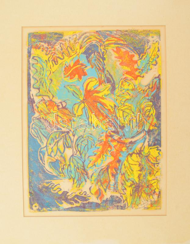 Székelyné Kasznár Aranka (1913-2002): Nyárvégi hangulat. Monotípia, papír, paszpartuban. Jelzett. 35x26 cm.