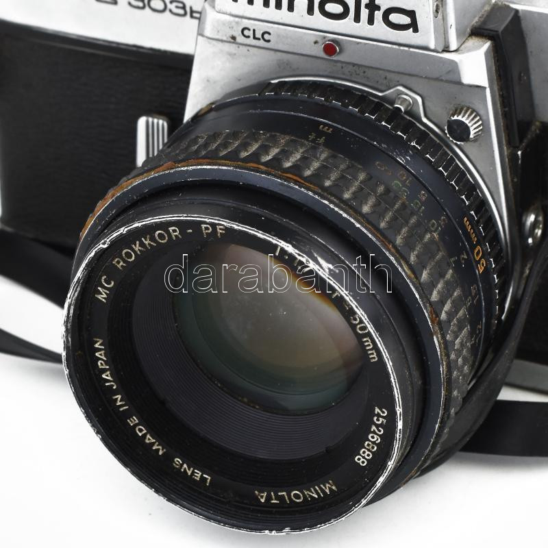 Minolta SrT 303b kamera Rokkor 1:1,7, f: 50mm objektívvel. kisebb sérü...