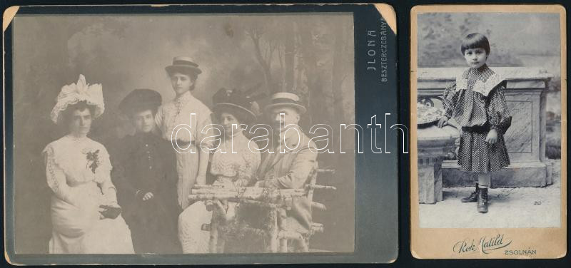 cca 1900 Műtermi portrék, 2 db keményhátú fotó Ilona besztercebányai é...