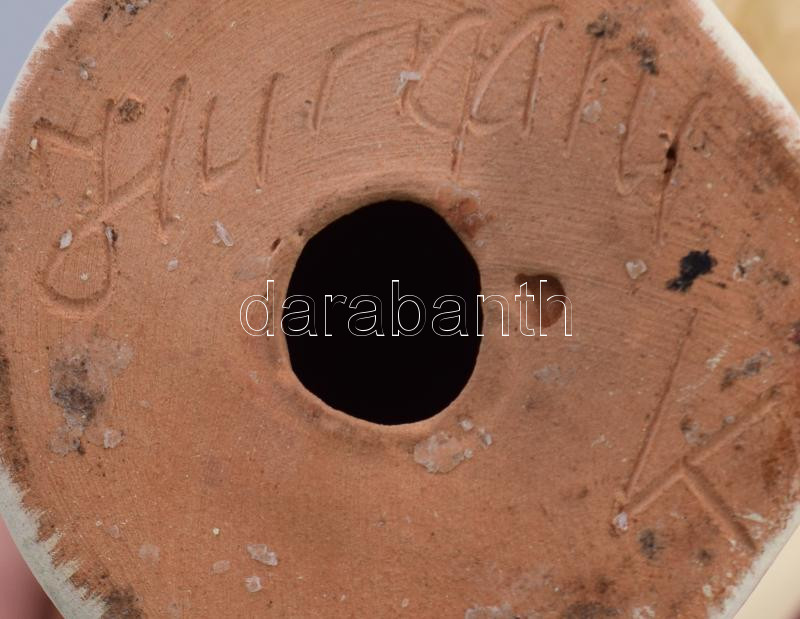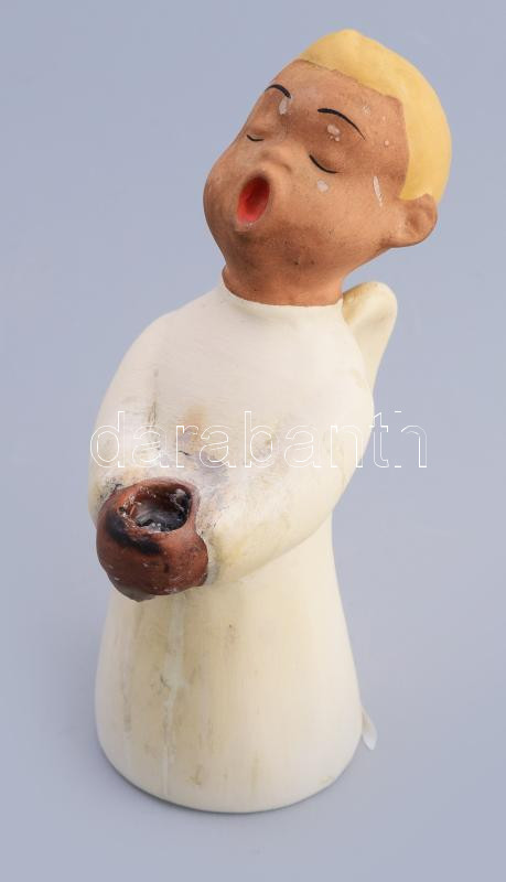 Hurgány jelzéssel: Art deco éneklő angyal, mázas kerámia, jelzett, kop...