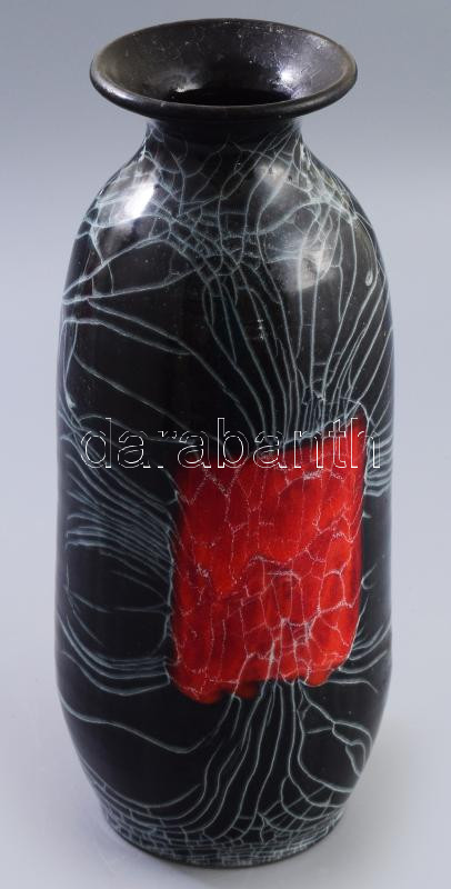 Mihály Béla: erezett geometrikus váza, jelzett, kis kopással, m: 30,5 ...