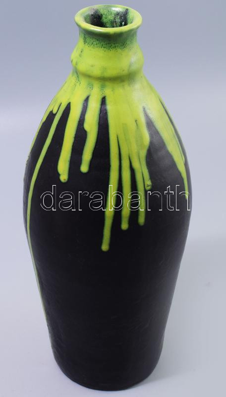Retro iparművész csorgatott mázas váza, jelzett, hibátlan, m: 35,5 cm