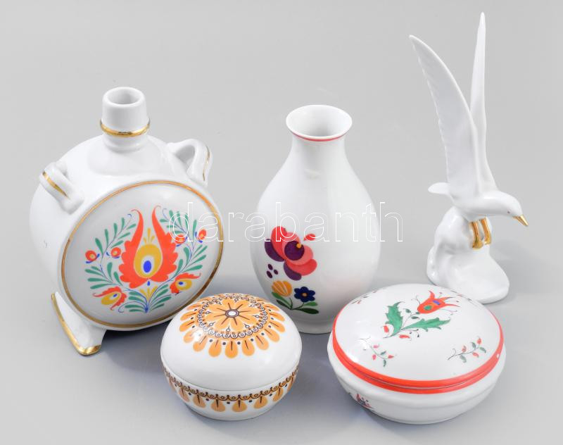 5 darabos magyar porcelán tétel, váza, bonbonier, figura, kulacs, kopá...