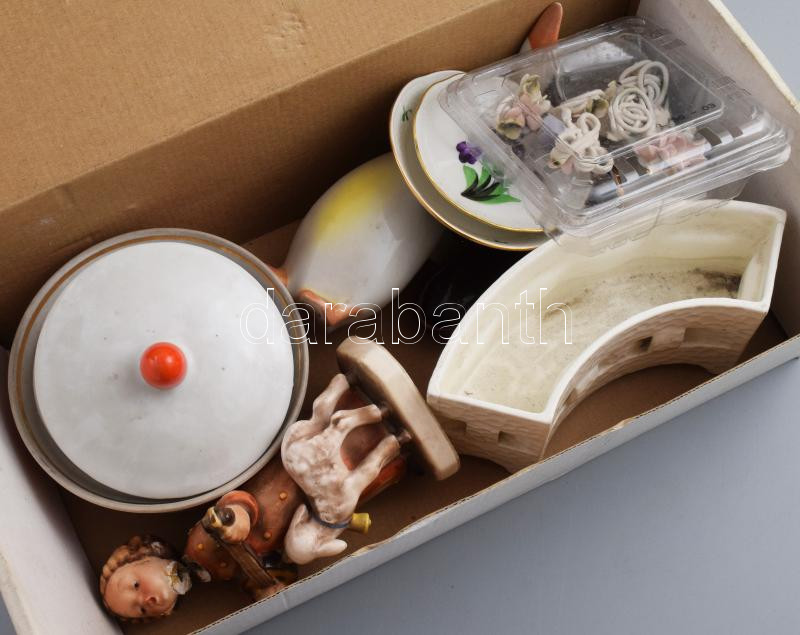 Doboznyi vegyes porcelán, közte sérültek, közte Herendi tálkák