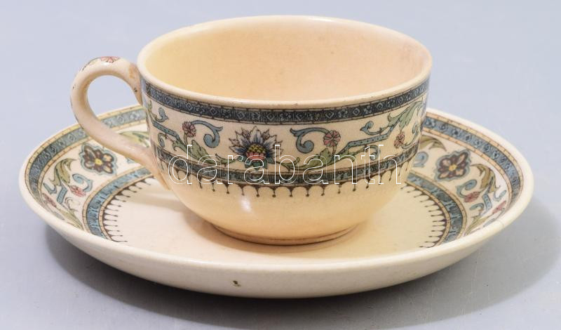 Fajansz mokkás csésze és alj, minimális sérülésekkel