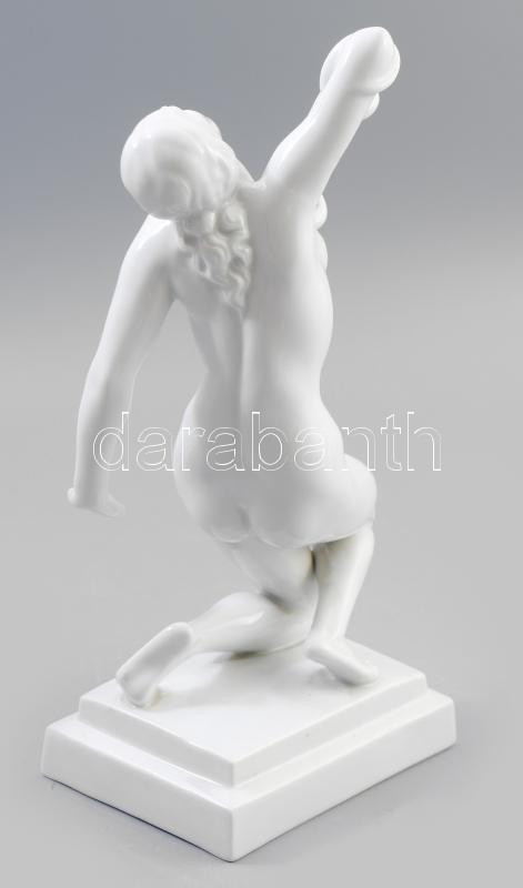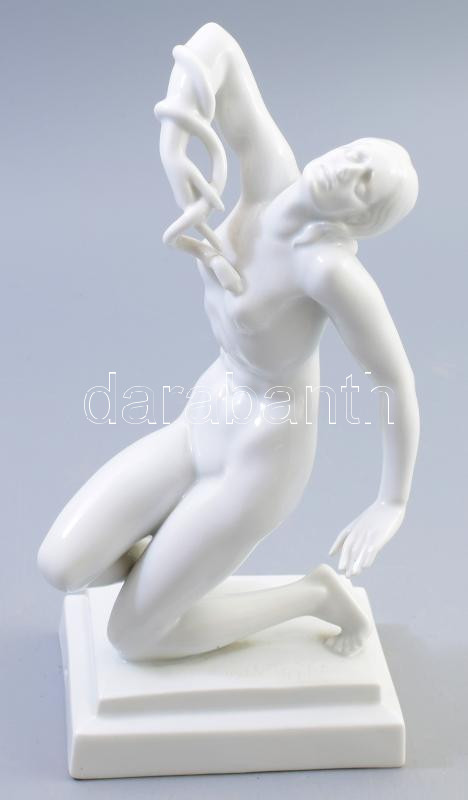 Herendi kisplasztika - Öngyilkos Kleopátra. Terv.: Szilágyi Nagy István (1900-1954). Fehérmázas porcelán, jelzett, m: 25,5 cm