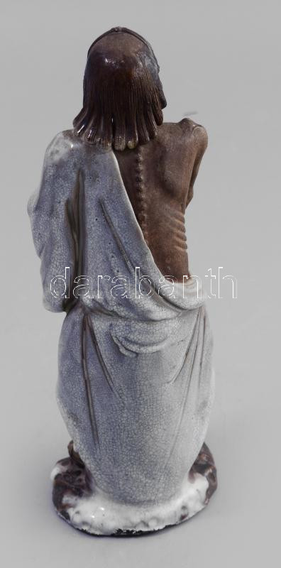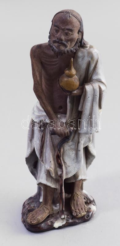 Japán szerzetes figura. Jelzés nélkül, kézzel festett, jelzett, hibátlan, m: 24 cm