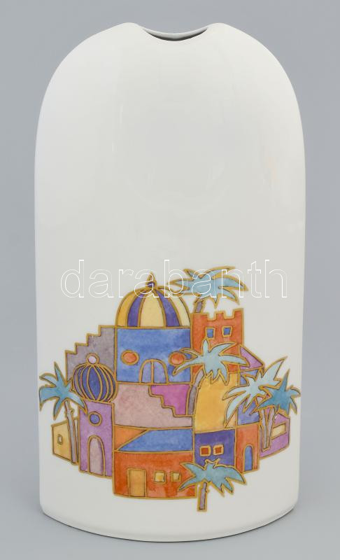 Közel-keleti látképes modern desgin váza, jelzett, m: 24,5 cm