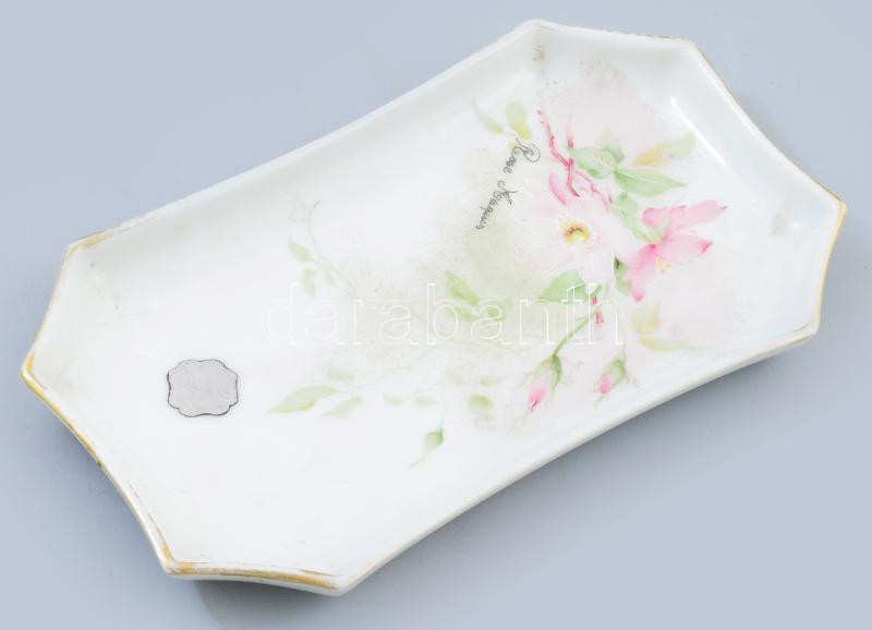 Limoges France ékszeres tálka, kopott, jelzett, 13x7,5 cm