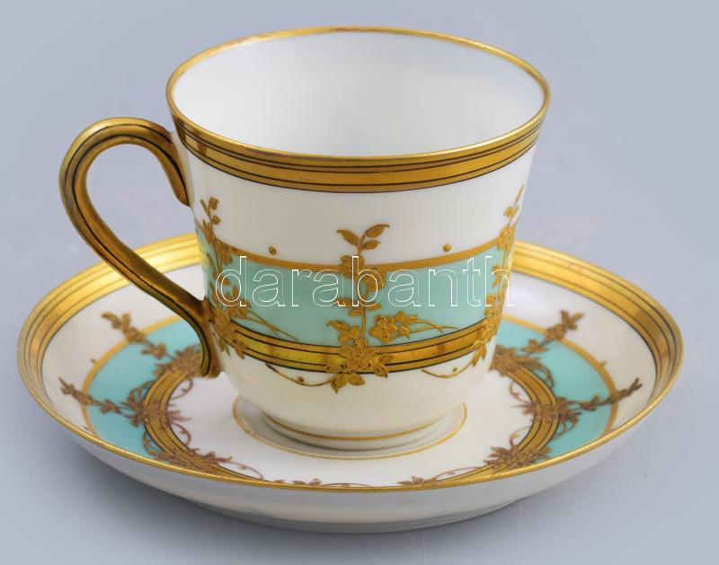 Pirkenhammer antik csésze alátéttel, jelzett, kis kopással, d: 11 cm