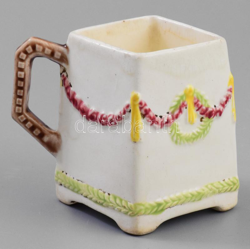Szecesziós angol tejszínkiöntő, formaszámmal, mázrepedt, m: 8,5 cm