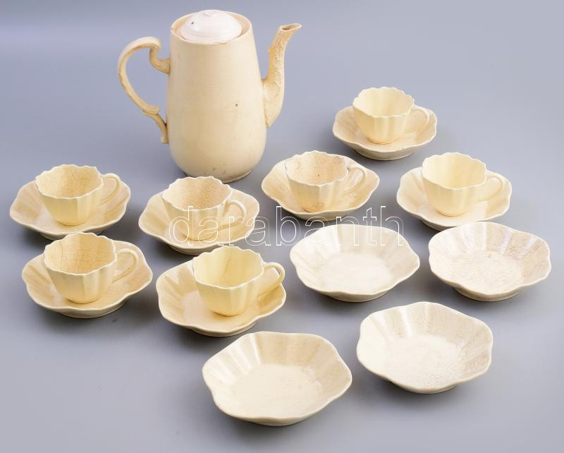 cca 19. sz. vége, Láng M. Budapest kávéskészlet 19 darabja, jelzett, sérülésekkel, hiányokkal.