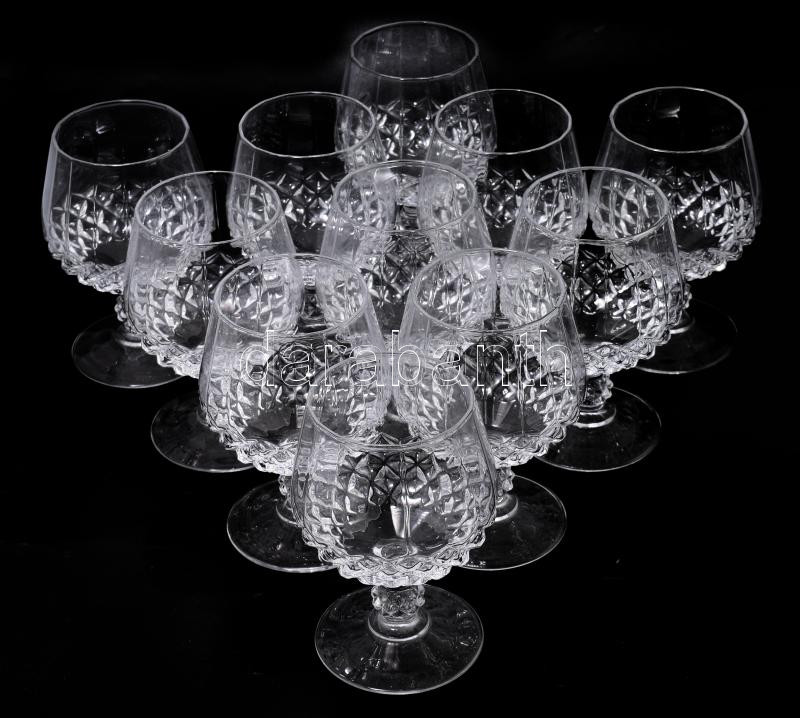 11 darab kristály konyakos pohár garnitúra, jelzés nélkül, m: 13 cm