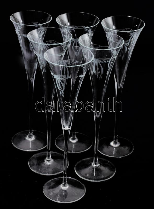 6 db metszett üveg pezsgős pohár. 28 cm