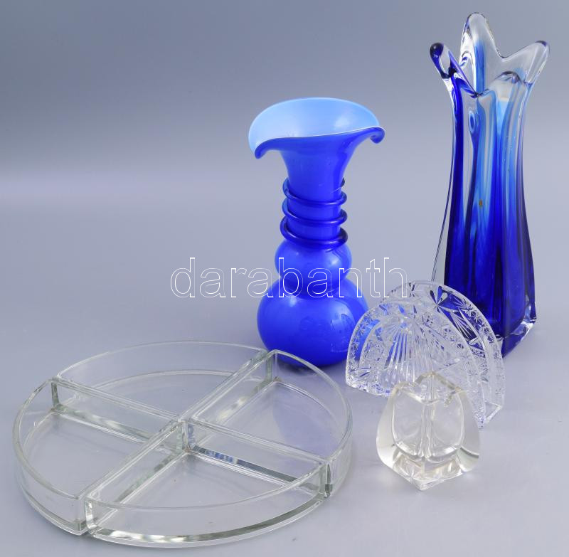 8 darabos üveg tétel, közte cseh és Murano vázák