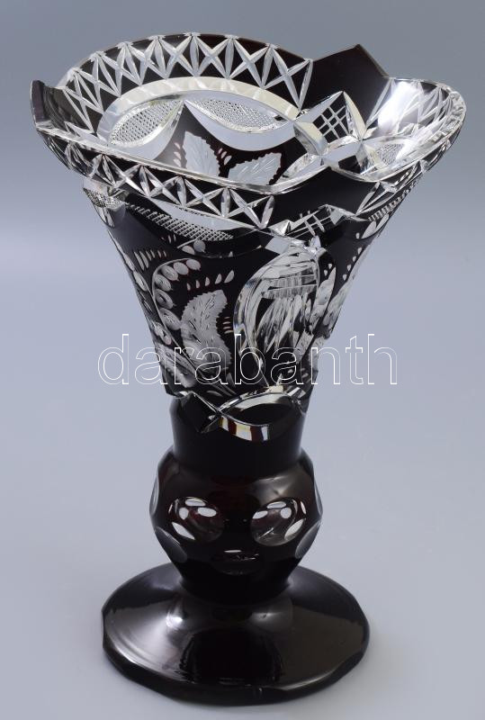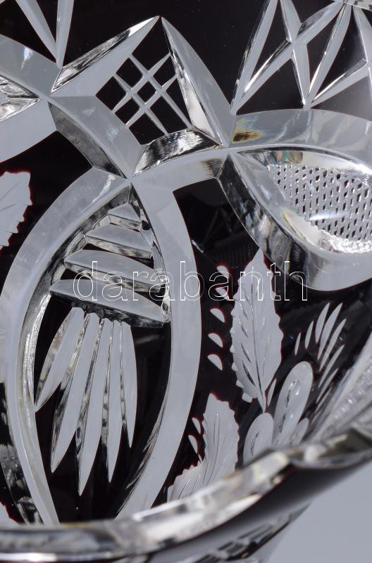 Ajka Crystal nagyméretű váza. Jelzés nélkül, jellegzetes bordó színnel pácolt, gazdagon csiszolt darab, hibátlan, m: 31 cm