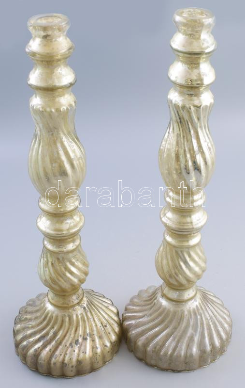 Antik nagyméretű foncsorüveg gyertyatartó pár, m: 43-44 cm