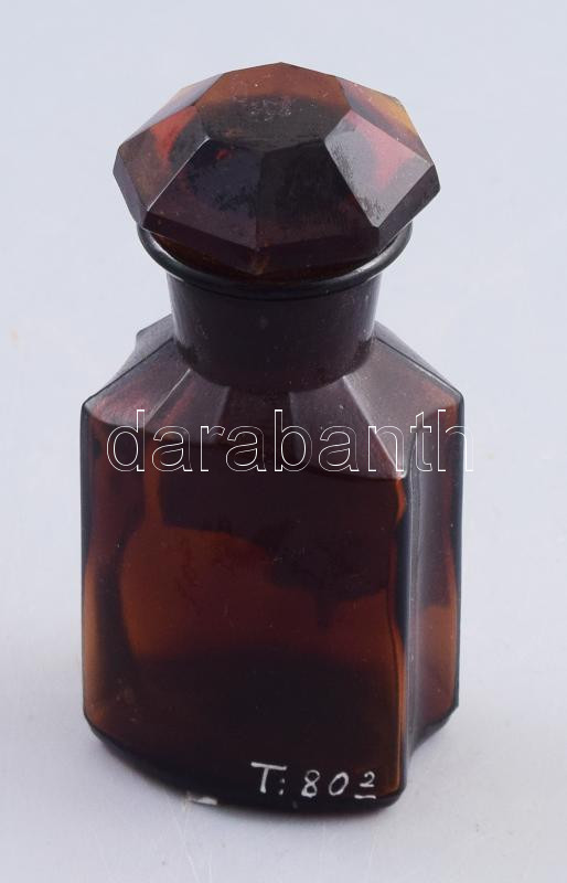 Antik patikai üveg, dugóval, felirattal, m: 10,5 cm