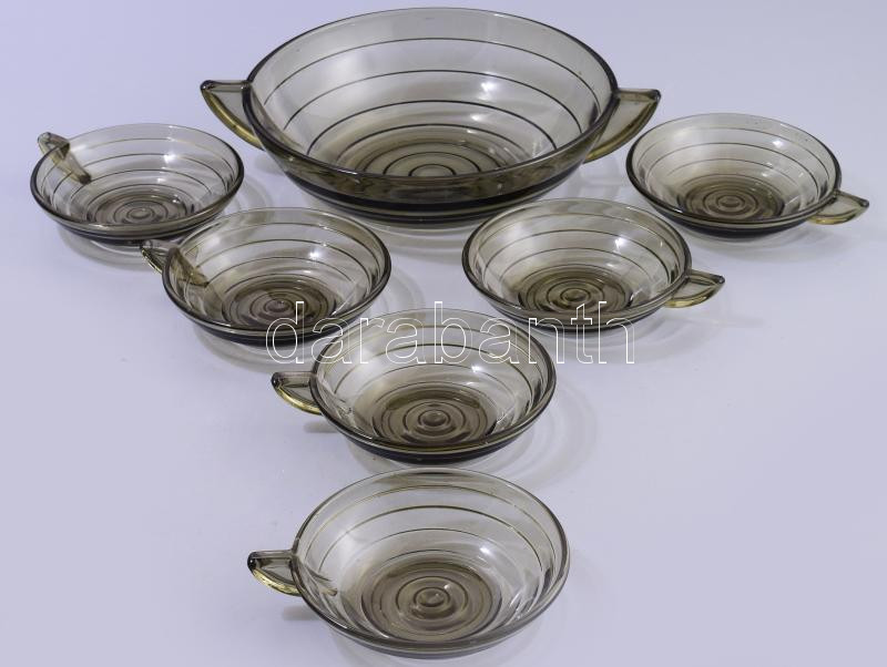 Art deco kompótos tál 6 pohárral. formába préselt, hibátlan d: 12 cm, ...