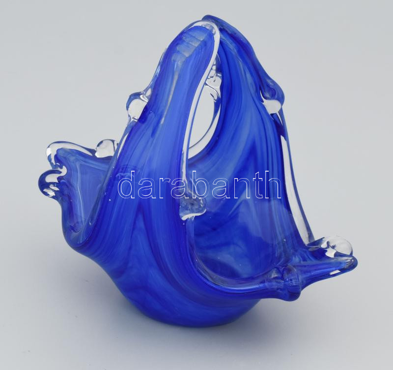 Cseh fátyolos kék színezésű asztaldísz, jelzés nélkül, m: 12,5 cm