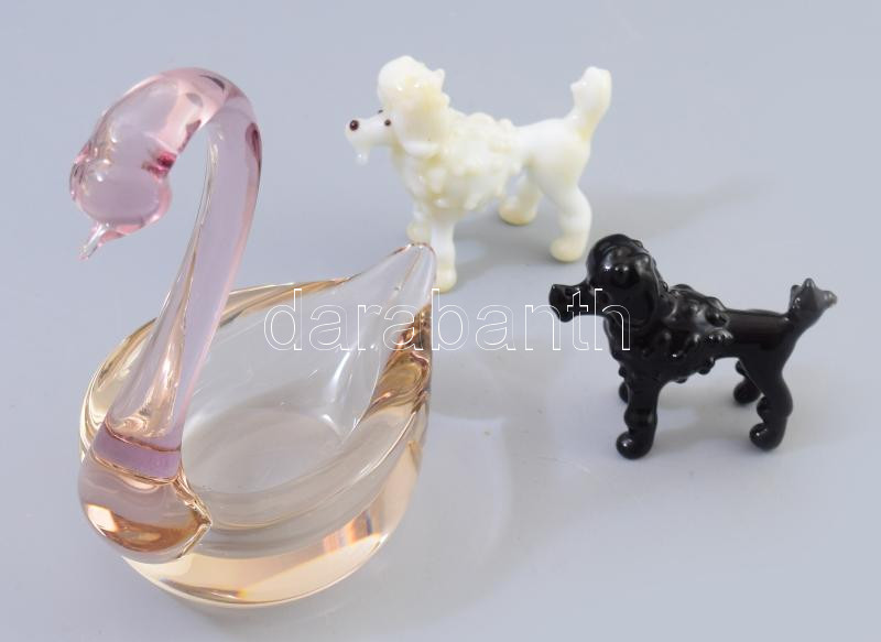 Murano hattyú és 2 darab opálüveg spániel, h: 5-13 cm