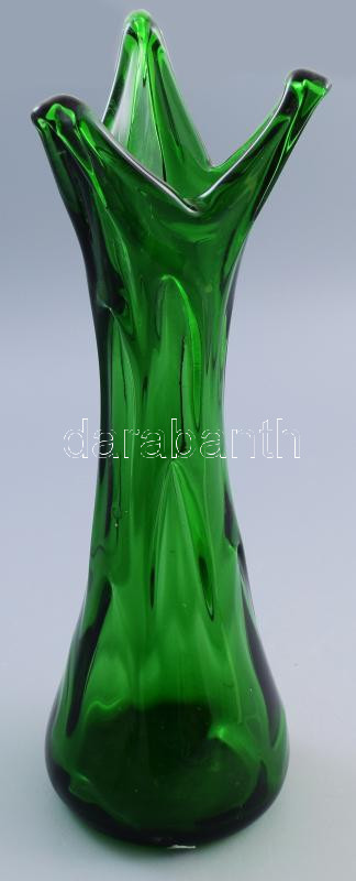 Murano mohazöld anyagában színezett váza, hutaüveg, jelzés nélkül, hibátlan, m: 41 cm