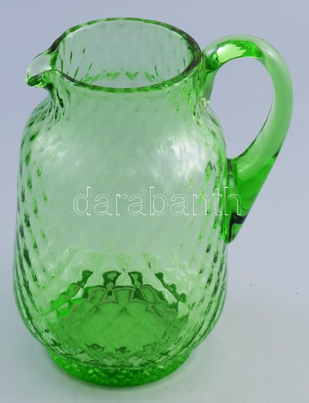 Századeleji bordázott zöld üvegkancsó, hibátlan, m: 21 cm