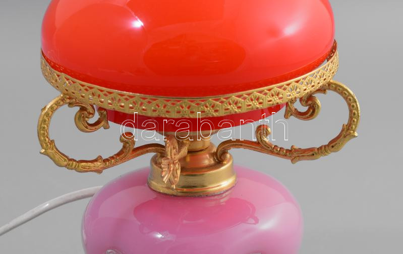 Üveg asztali lámpa, rózsaszín testtel, többrétegű narancsszínű búrával...