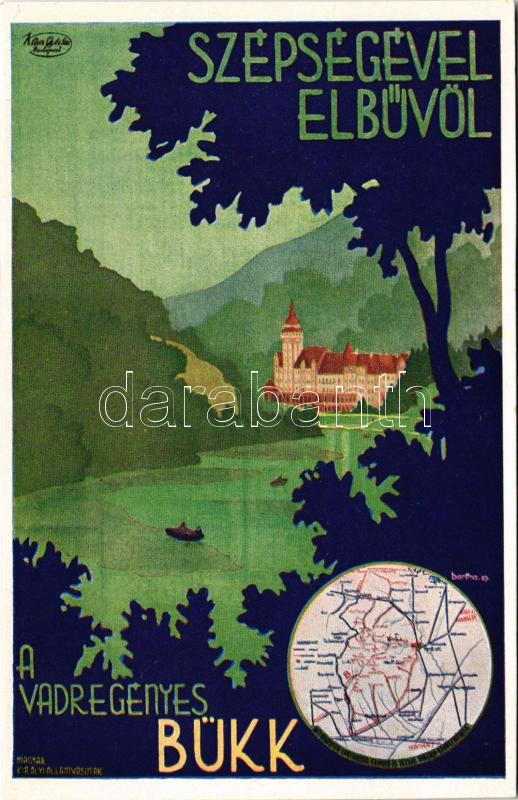 Description: Lillafüred (Miskolc), Szépségével elbűvöl a vadregényes Bükk. A Magyar Királyi Államvasutak (MÁV) turisztikai reklám képeslapja. Klösz György és Fia / Hungarian State Railways tourism campaign advertisement s: Bartha