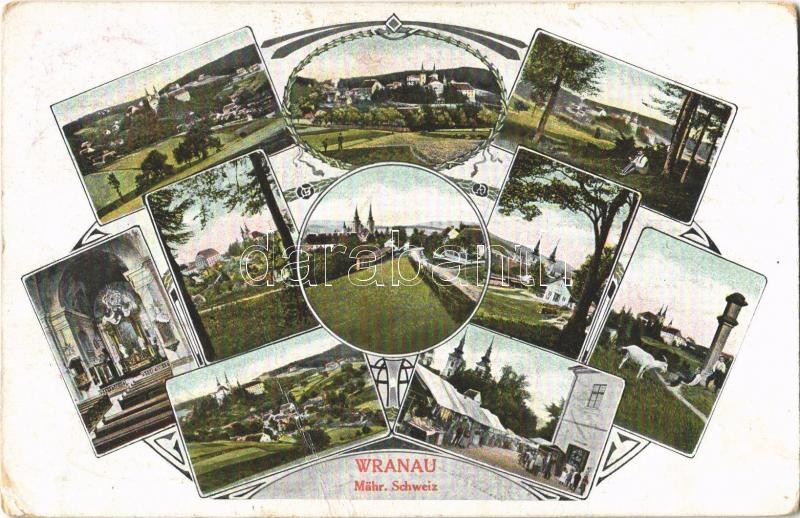 1918 Vranov, Wranau, Mahr. Schweiz / general view, church interior, market (EK)