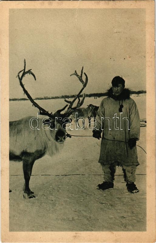 Un Renne et son Maitre / Eskimo man with a reindeer, folklore (small t...