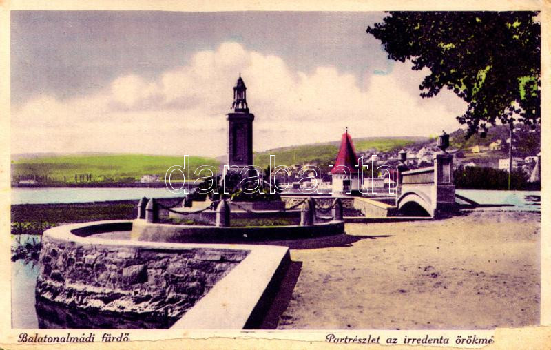 Balatonalmádi, Part részlet az irredenta örökmécsessel (felületi sérül...