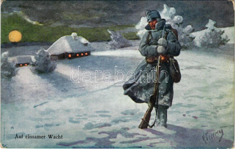 Auf einsamer Wacht / WWI Austro-Hungarian K.u.K. military art postcard...