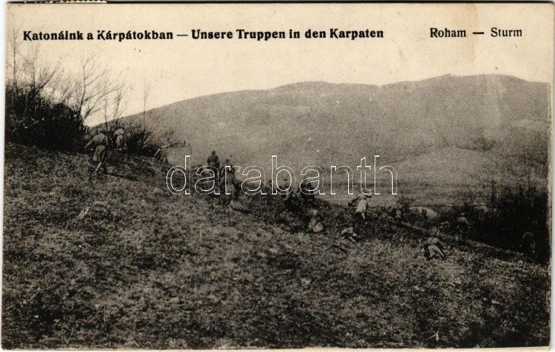 Katonáink a Kárpátokban. Roham / Unsere Truppen in den Karpaten. Sturm...