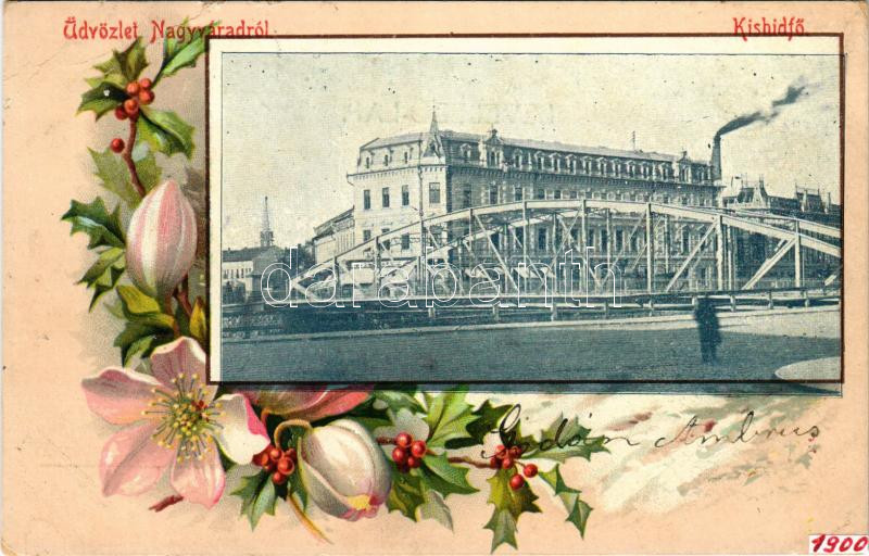 1900 Nagyvárad, Oradea; Kishídfő. Szecessziós virágos litho keret / bridge. Art Nouveau, floral, litho frame (EB)