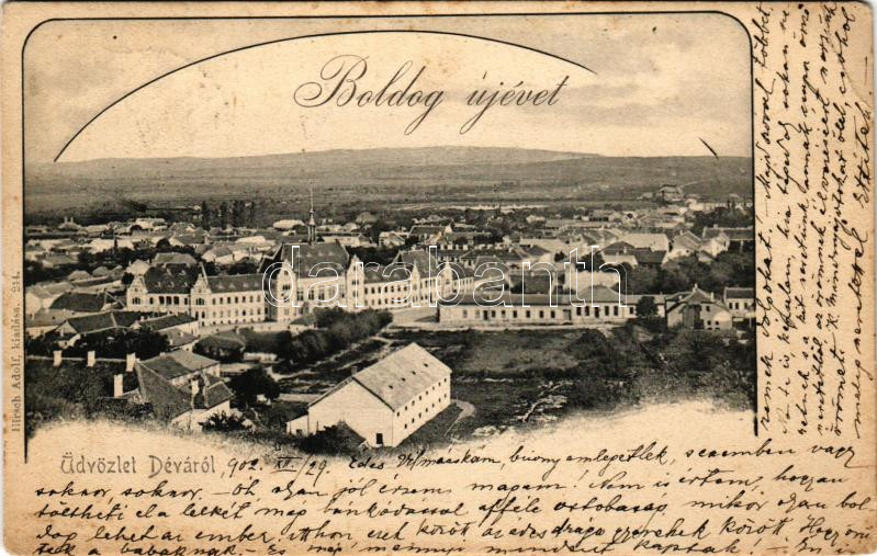 1902 Déva, kilátás a várból, újévi üdvözlettel. Hirsch Adolf kiadása / view from the castle, with New Year greetings (EB)