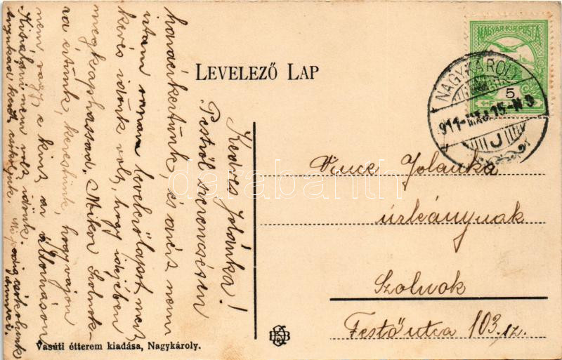 1911 Nagykároly, Carei; Gróf Károlyi kastély belseje. Vasúti étterem k...