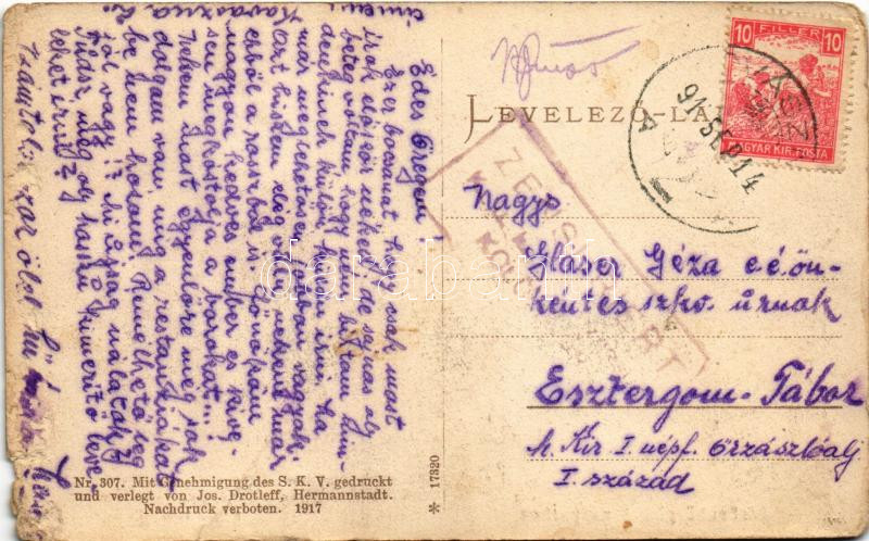 Description: Fogarasi-havasok, Siebenbürgische Karpathen, Muntii Fagarasului; Königstein. Az esztergomi tábor M. kir. I. népfölkelő őrzászlóalj I. század Gláser Géza e. é. önkéntes szakaszvezetőnek küldött levél + "ZENSURIERT" (EM)
