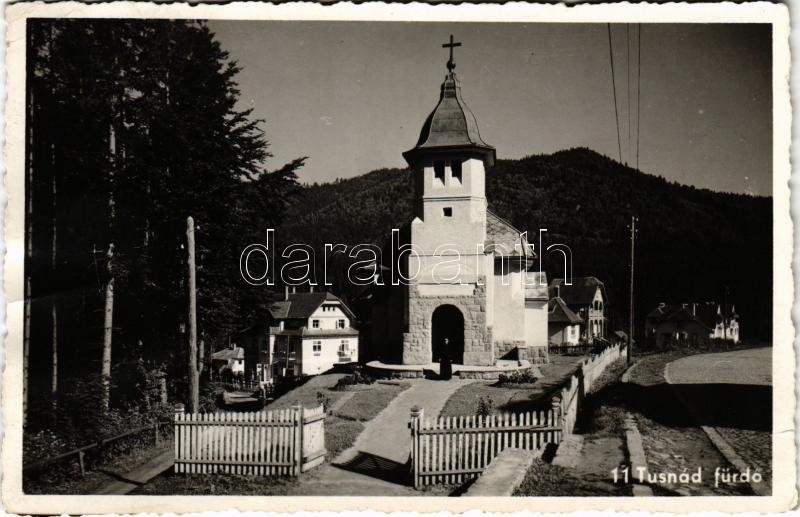 Tusnádfürdő, Baile Tusnad; templom, utca / church, street view (gyűrőd...