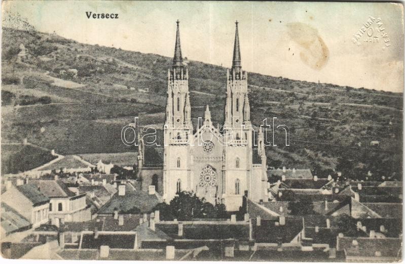 Versec, Vrsac; látkép, templom / general view, church (Rb)