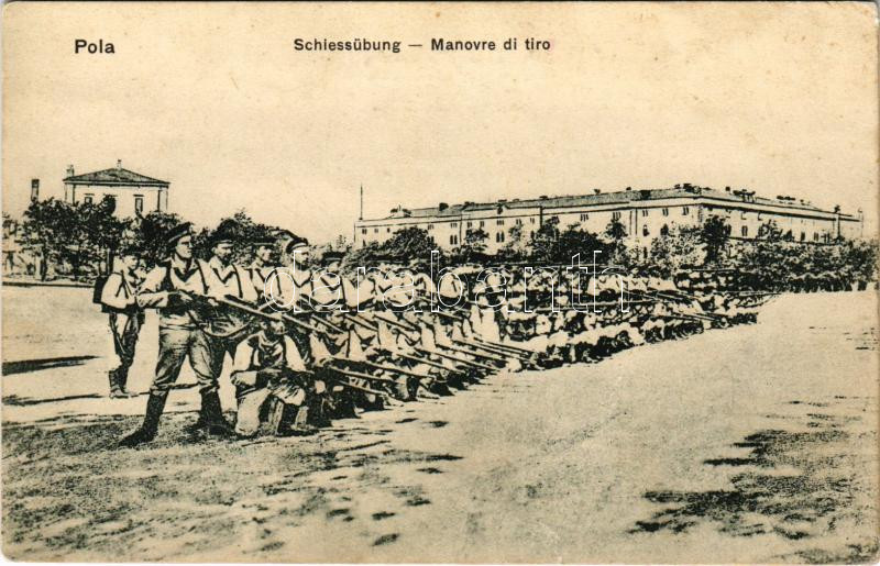 Pola, K.u.K. Kriegsmarine Schiessübung / Austro-Hungarian Navy training, mariners on mainland, shooting practice. A. Bonetti Pola (fl)