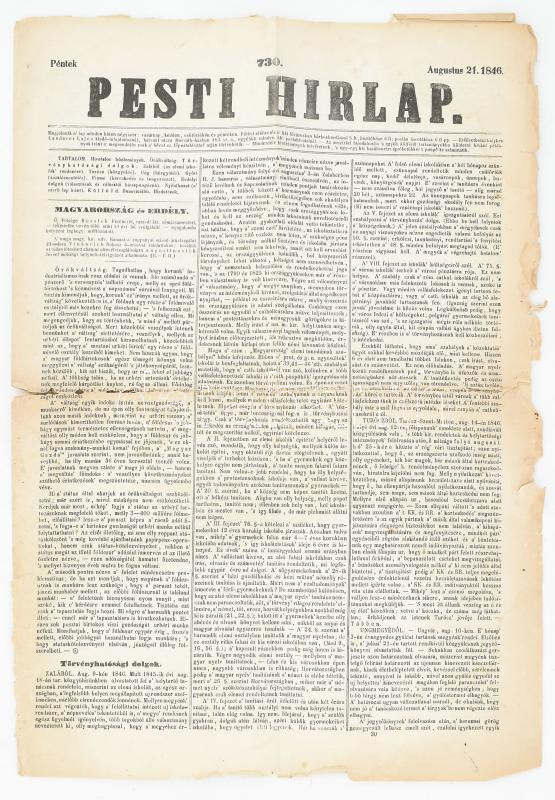 1846 Pesti Hírlap 1846. aug. 21., 730. szám. Szerk.: Csengery Antal. P... https://www.darabanth.com/en/476-Online-auction/476.0/Art-and-other-collectibles/Advertisement~2000116/1846-Pesti-Hirlap-1846-aug-21-730-szam-Szerk-Csengery-Antal-Pest-Landerer-Lajos-ny-~II3237957
