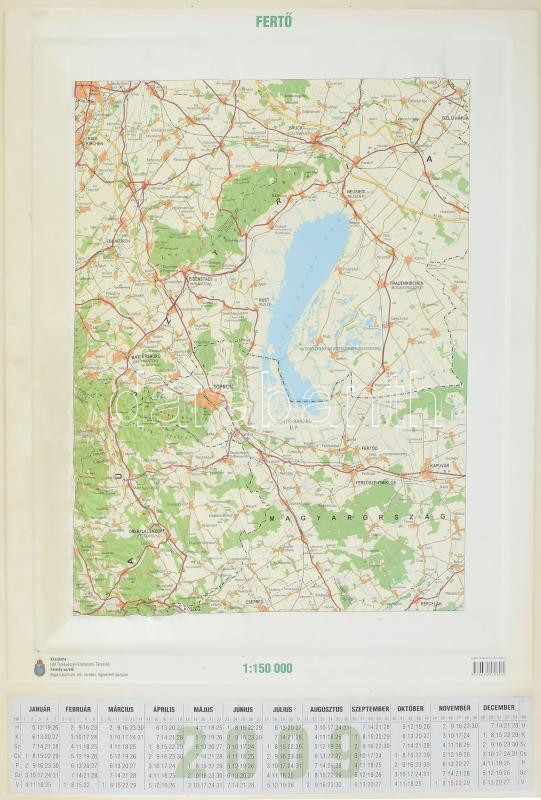 Fertő-tó és környékének térképe, dombortérkép, 1:150.000, az alján 2009-es naptár, 79,5x56,5 cm