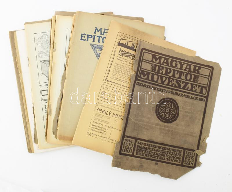 cca 1910-14 Magyar Építőművészet, szerk. Führer Miklós, 10 szórványszáma. Benne Kozma Lajos, Kós Károly, Györgyi Dénes, Alpár Ignác, Löffler Sándor, Komor Marcel, Jakab Dezső, Róth Miksa...stb. Változó állapotban, közte sérültek