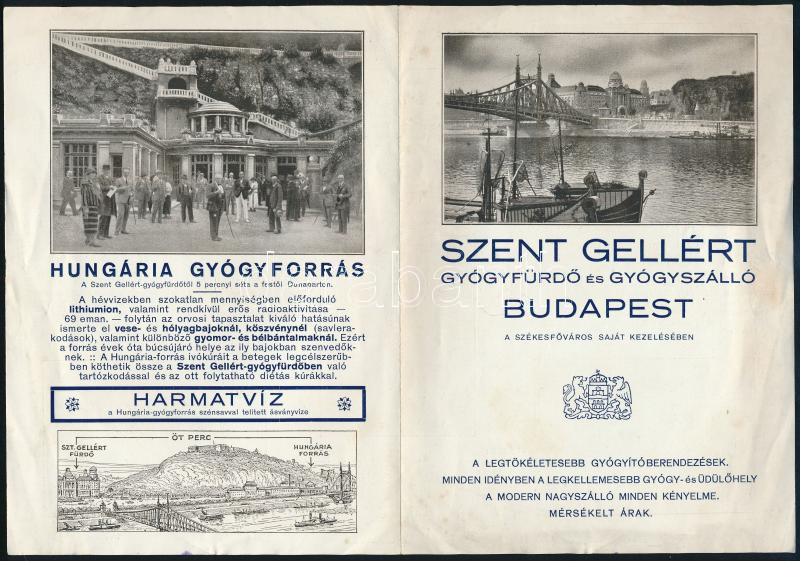 cca 1930 Szent Gellért gyógyfürdő és Gyógyszálló képes reklám nyomtatv...